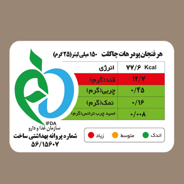 مقدار 25 گرم معادل 5 پيمانه يا قاشق غذاخوري پودر هات چاكلت پرميوم را در يك فنجان آب جوش يا شير داغ ريخته و هم بزنيد.