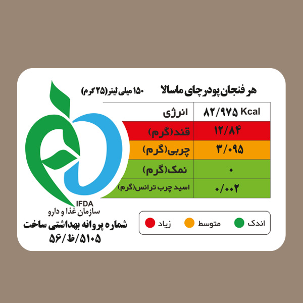 مقدار 30 گرم معادل 3 پيمانه يا قاشق غذاخوري پودر چاي ماسالا را در يك فنجان آب جوش يا شير داغ ريخته و هم بزنيد.