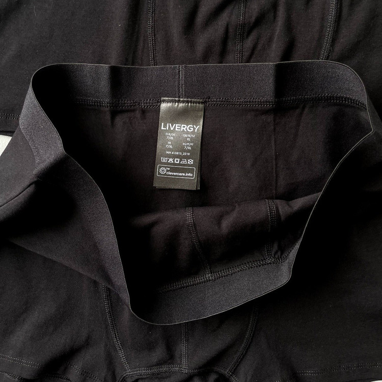شورت پادار(باکسر) مردانه برند لیورجی کد ۴۱۵۸۱۳ از جنس پارچه ی نخی نرم و لطیف با قابلیت کشسانی بوده که ضد حساسیت های پوستی میباشد و دارای کش راحت کمر با استحکام بالا بوده و مناسب برای استفاده روزمره میباشد و بسیار راحت و کاربردی است. شورت پادار(باکسر) مردانه برند لیورجی کد ۴۱۵۸۱۳ دارای نشان استاندارد ECO_VERO است، که یکی از نشان های معتبر به حساب می آید. این محصول از برند لیورجی (Livergy) است که از زیر شاخه های لیدل (LIDL) آلمان میباشد که همواره محصولات باکیفیتی را تولید و عرضه میکند و به اقتصادی و باکیفیت بودن محصولاتش شهرت دارد. این برند به طور اختصاصی به تولید پوشاک مردانه می پردازد.